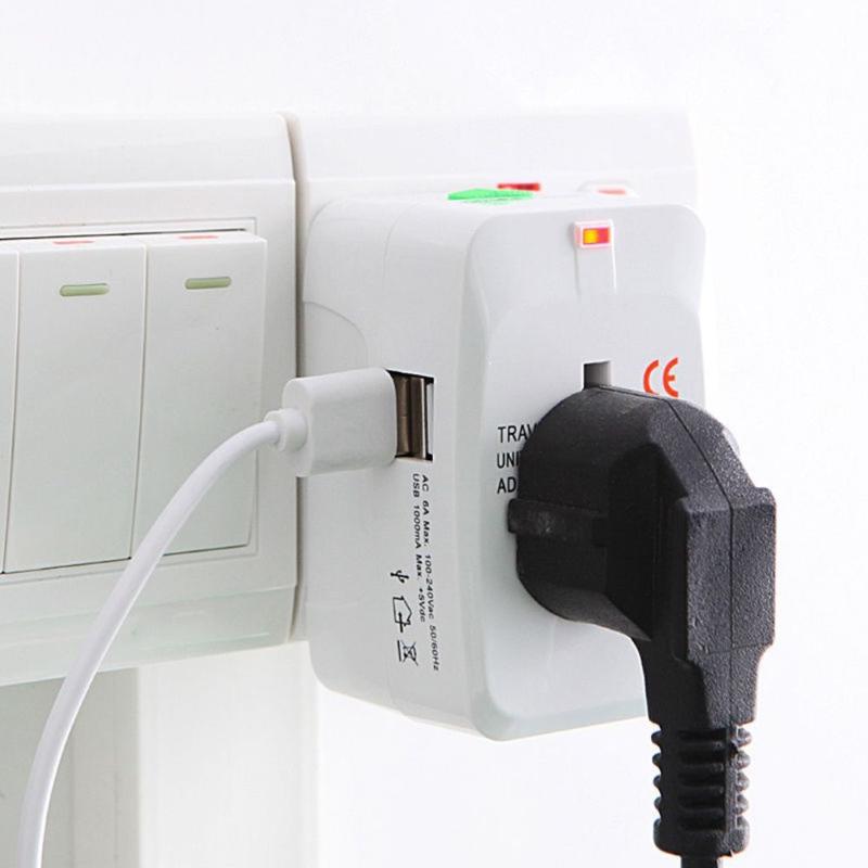 1Pcs All In One International Plug Adapter Protable Au Us Uk Eu Converter 2 Usb Type C Ports World Travel Ac Power Charger