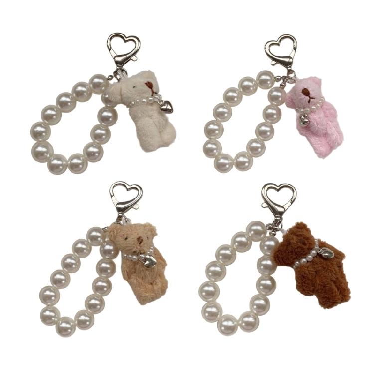 Soft Bear Keychain with Heart and Imitation Pearls Detailing Plush Bag Pendant Accessory Gift for Women and Ladies