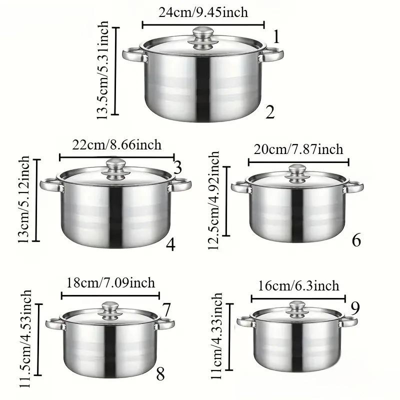 10-piece Stainless Steel Cookware Set, Suitable for Induction Cooktops, Ideal for Outdoor, Dormitory, Camping Use