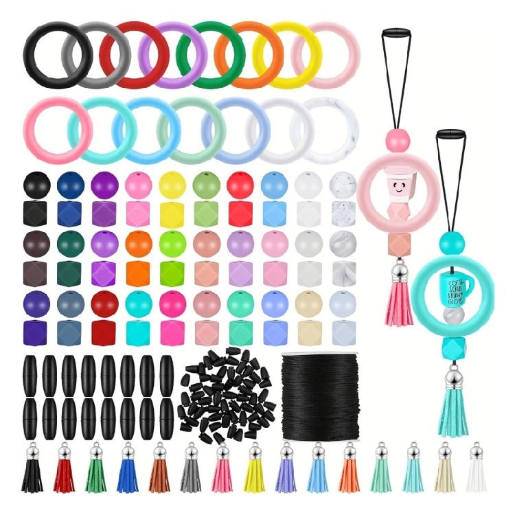 91pcs Silicone Rings and Beads Personalize Keyring Decorations O Shaped Rings