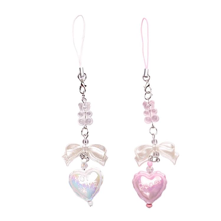 Raise your phone's style with the Heart Beaded Phone Charm! Featuring a cute pink bowknot pendant, this accessory adds a unique touch to your phone.