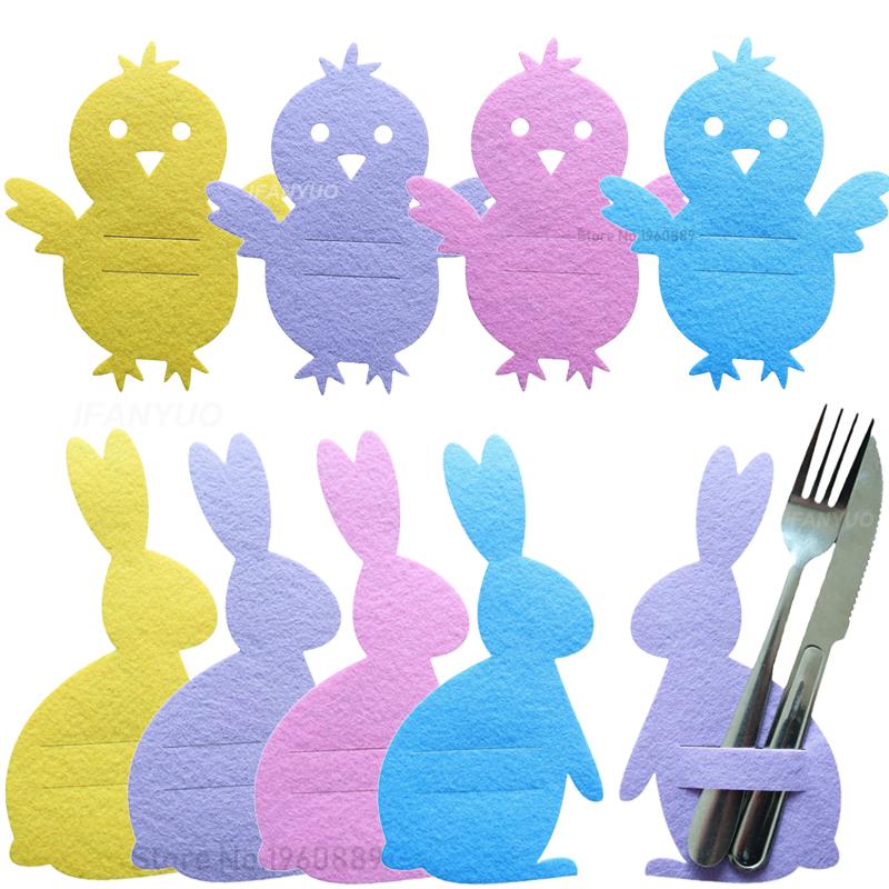 4Pcs Easter Knife Fork Holder Tableware Bag Non-woven Chick Rabbit Cutlery Bag Organizer Easter Bunny Party Supplies Home Decor