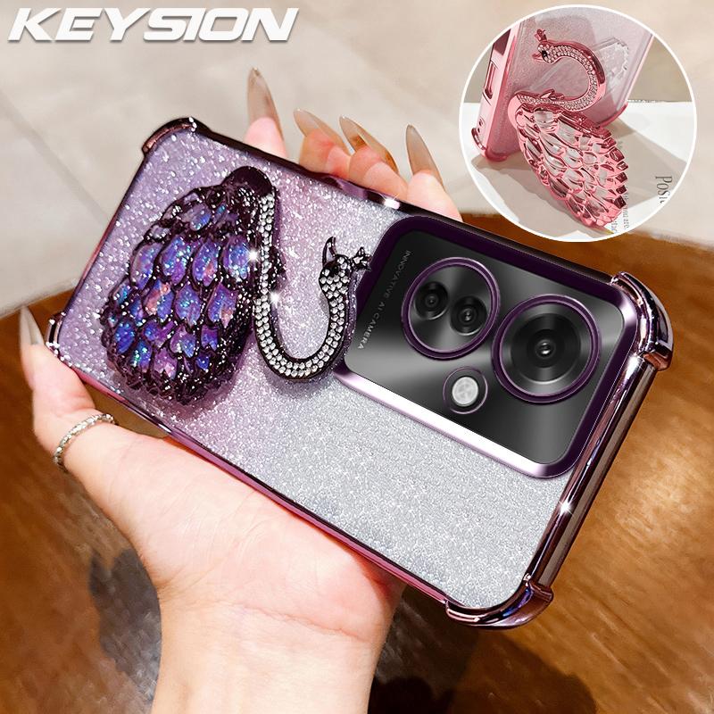 KEYSION Shockproof Plating Phone Case for OPPO Reno11 F 5G Clear TPU Glitter Jewelled Swan Kickstand Back Cover for OPPO Reno11F 5G