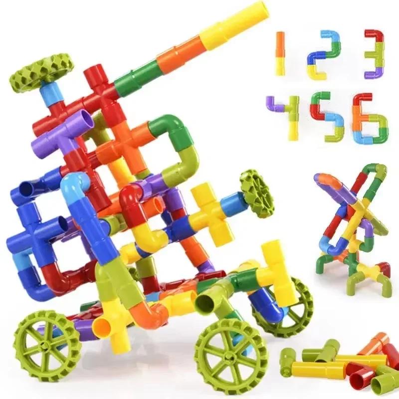 Kids' Plastic Water Pipe Building Blocks Toys Assembly Educational Playsets For Boys Aged 3-4-6 Years Old Creative Connector