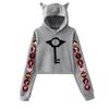 Women Long Sleeve Hoodies Casual Pullovers Cat Ears Hoodie Hazbin Hotel Print Crop Top Black Sweatshirts Female Clothes