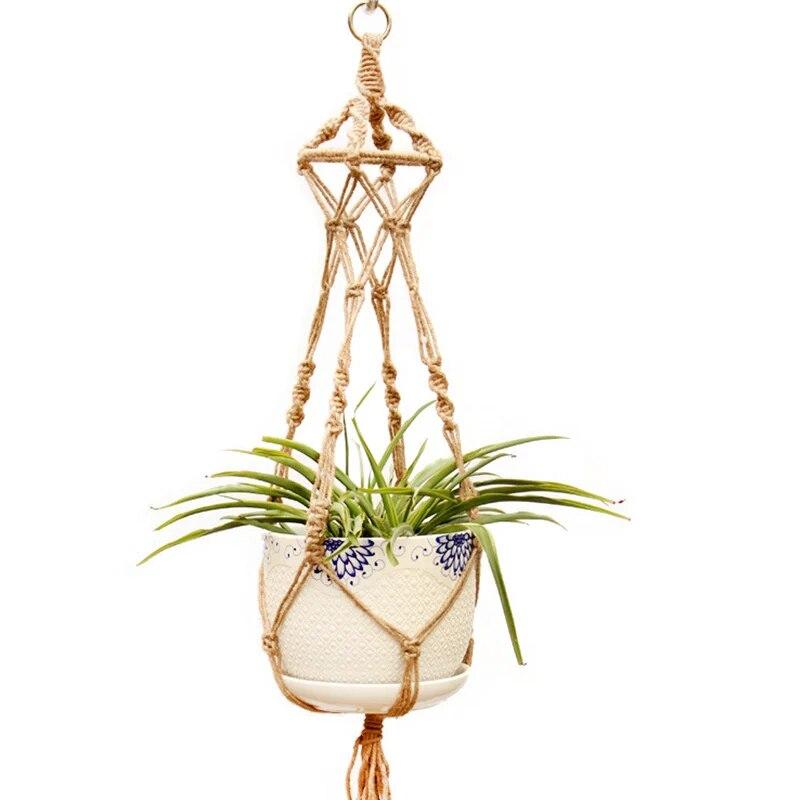 Flower Pot Hemp Rope Hanging Net Straw Macrame Plant Hanger Flower Pot Garden Holder Legs Hanging Rope Basket Balcony Decor