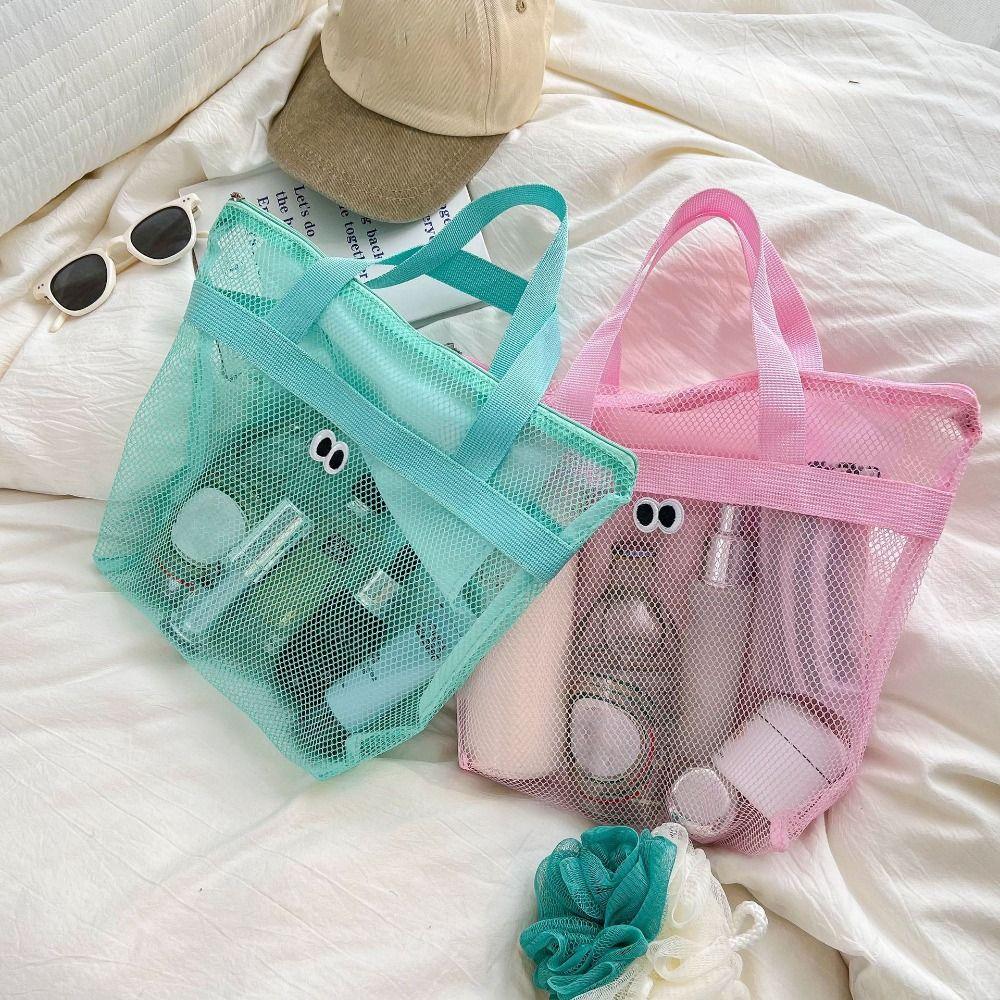 Portable Large Capacity Mesh Wash Bag Cute Foldable Cosmetic Bag Breathable Beach Handbags