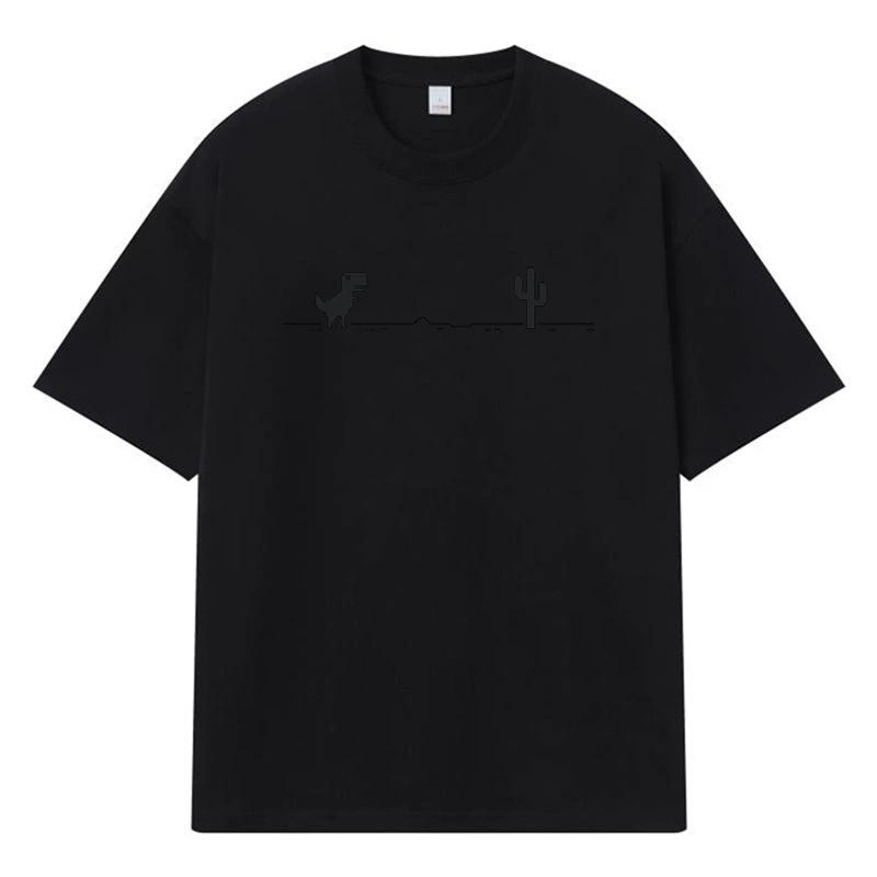 2026 Dinosaur And Cactus Printed Graphic Y2k Harajuku Streetwear 100% Cotton T Shirt Casual Oversized Summer Men T-shirt