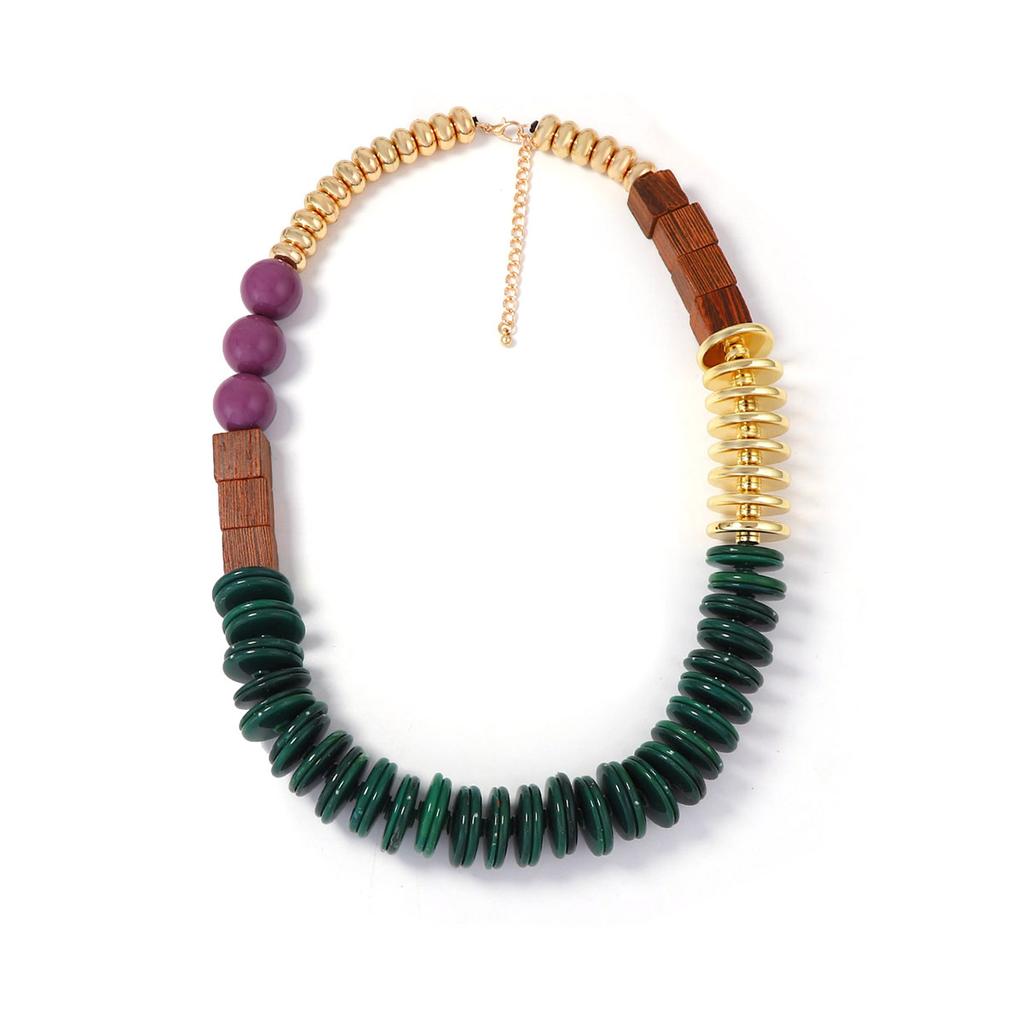 Exaggerated Casual Retro Literary Geometric Plastic Beaded CCB Wooden Square Splicing Necklace Women's Necklace