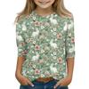 Children's 3/4 Sleeve Tops Casual Print T Shirt Round Neck Pullover Blouse