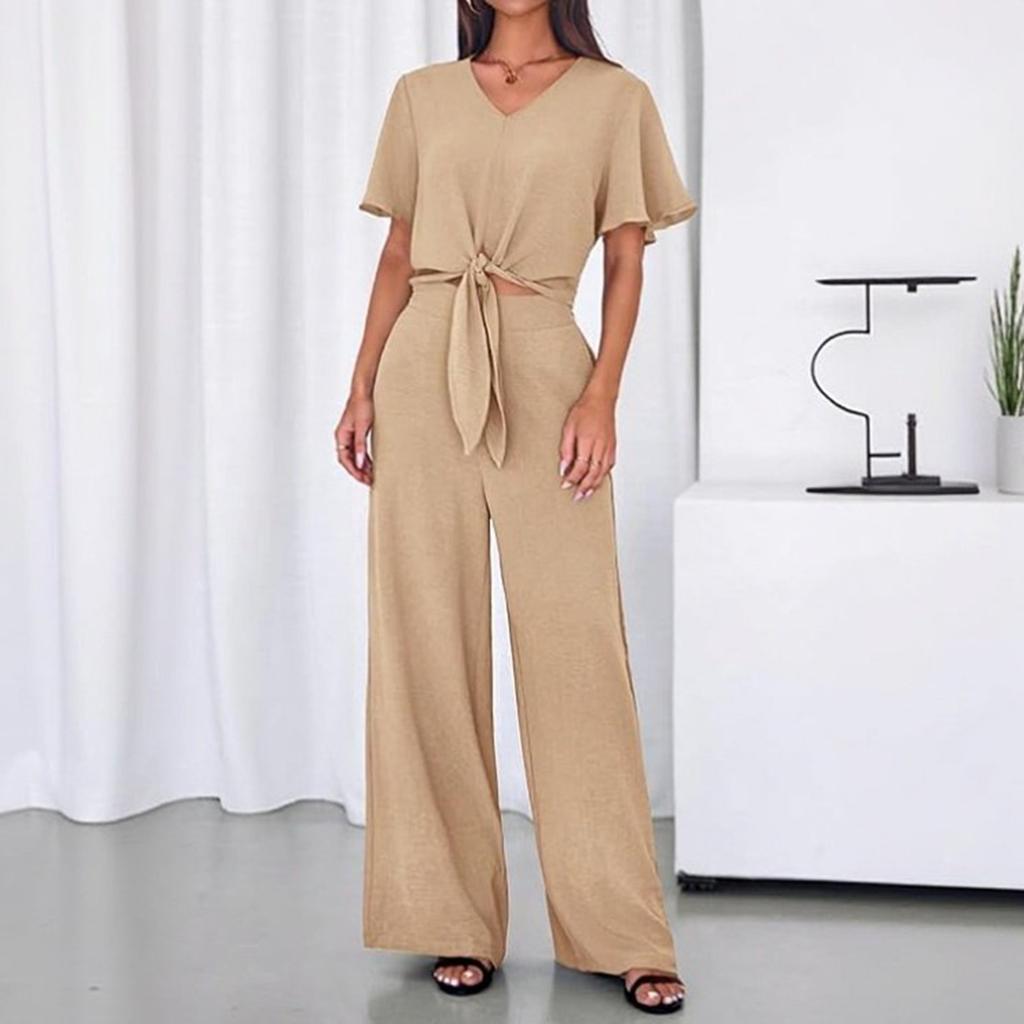 Features: Material: Made of high quality material, and suitable for daily wear, made of soft fabric, polyester, light and comfortable, wardrobe , easy to dress up or take off, comfortable to wear all day. Occasion: This dress is perfect for everyday, outing, party, work, casual wear. It's so random you might some extra covers! This one is available in a variety of colors to suit your personal . It is the best choice for gift giving Wash with cold water, the size will not change much, if you have any questions when choosing, welcome to consult Different monitors will have a little color difference, please don't mind Product Information Gender: Female Sleeve length: short sleeved Pants length: Long pants Pattern type: Solid color Occasion: Leisure, Daily, Party, Beach Hand washing and machine washing are both acceptable Package includes: 1 top and 1 pair of pants