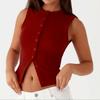 Women's Fashionable Casual Slim Fit Short Ribbed Sleeveless Button-Up Vest T-Shirt