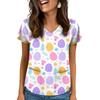 Women's V-Neck Easter Print Short-Sleeve Pocket Top With Side Slit