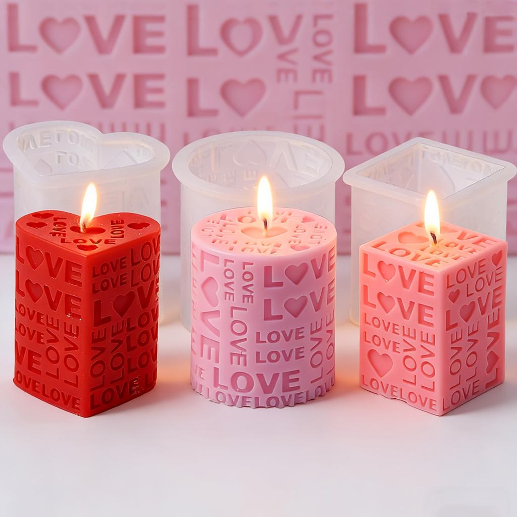 1pc Love Pillar Candle Mold | Embossed LOVE Letters Cylinder & Cube Mold, Silicone Material, Irregular Shape, Ideal for Wedding, Handmade Soap