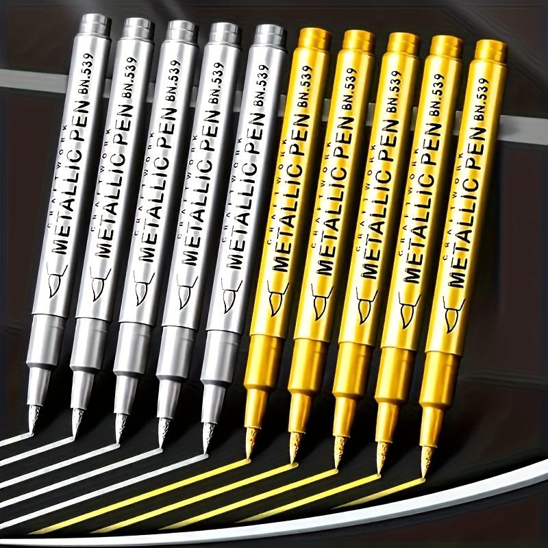 4pcs Set of Golden and Silvery Permanent Markers- Waterproof, Suitable for DIY Crafts, Resin Art, and Office Supplies, Model Building Painting Tools