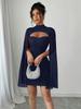 Women's Round Neck Hole Striped Pearl Mesh Cape Bodycon Dress