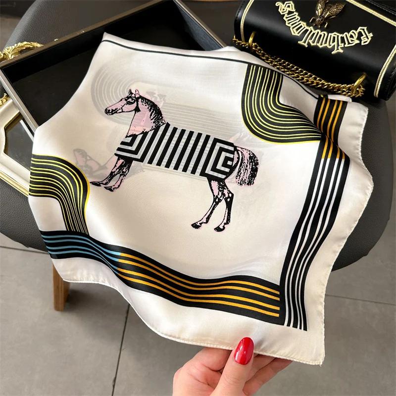 Luxury Silk Shawl Square Scarf Women Horse Satin Hijab Fashion Wraps Neckerchief Female Hair Bands Ribbon Headband Bandana 70CM