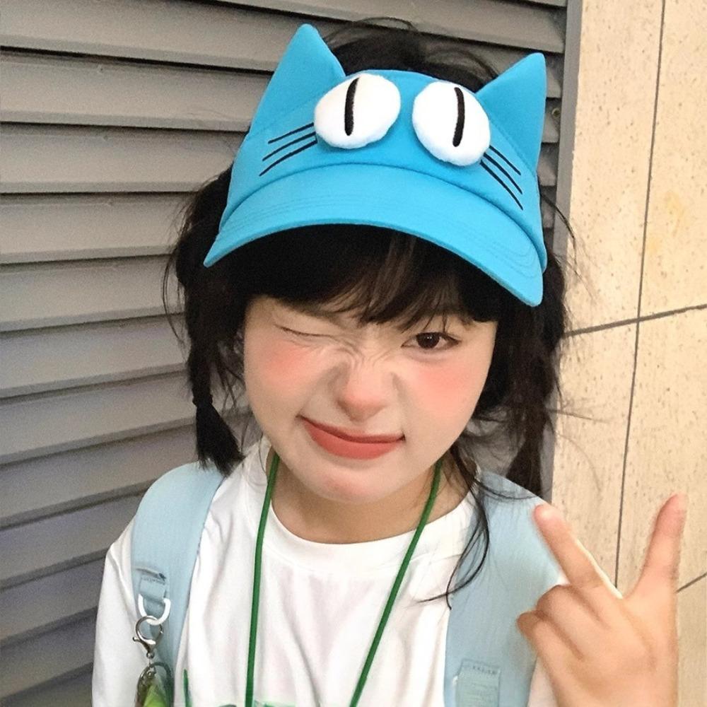 Quick-drying Fabric Big Eyes Cat Visor Cap Sun Protection Cat Ears Sun Hat Kitty Hollow Hat Girls