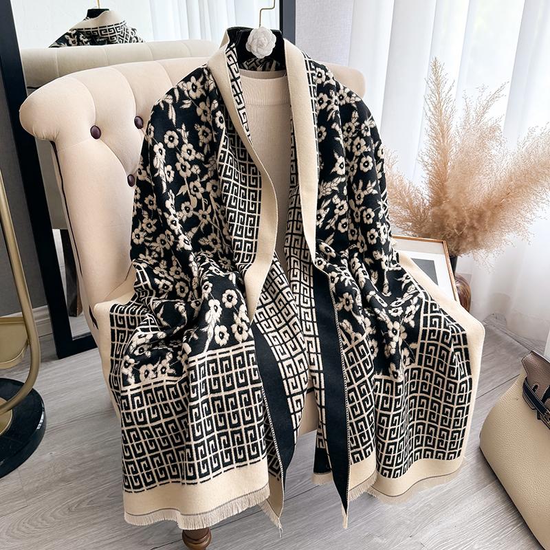 Winter Women Cashmere Scarf Thick Warm Pashmina Shawls Wraps Floral Jacquard Lady Blanket Echarpe Bufanda Female New