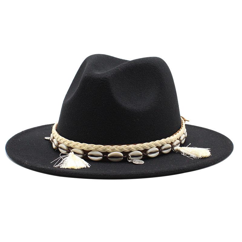 Woolen Top Hat, Minority Style Jazz Hat, Retro Flat-Brimmed Big Eaves Hat.