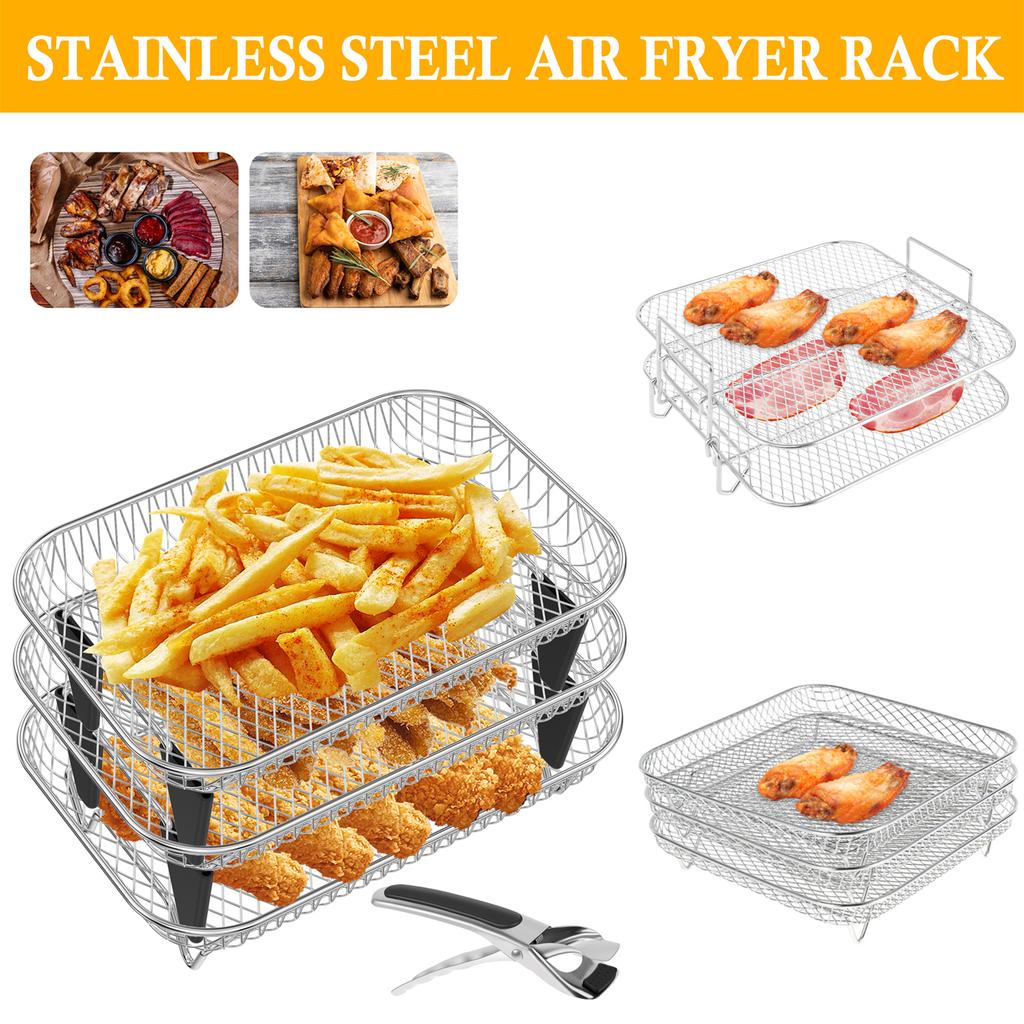 2/3 Tier Air Fryer Rack Stainless Steel Stackable Grill Grid Dehydration Rack Grill Tray Steamer Rack Kitchen Cooking Tools