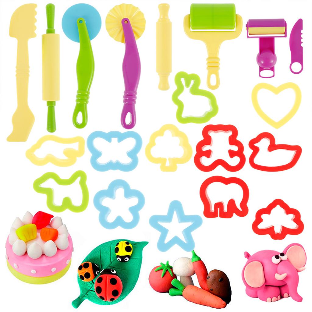 Kids Play Dough Tool Kit Color Clay Dough Animal Molds Mini Clay Tools Cutters Rolling Pins Plasticine Molds Clay Accessories