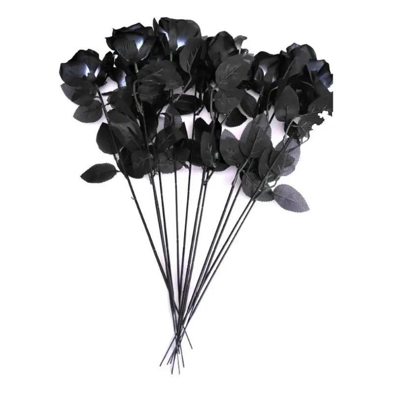 10Pcs/Set Artificial Black Single Rose Bouquet Halloween Ghost Festival Horror Gothic Style Dark Series Decorative FakeFlowers