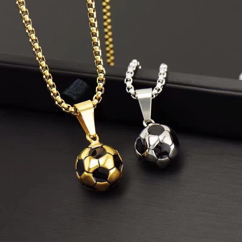 Football Necklace Men's Titanium Steel Non Fading Creative Sports Style European And American Stainless Steel Jewelry Pendant