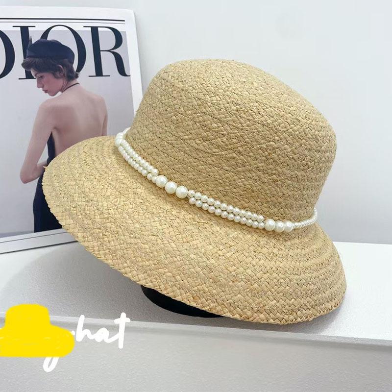 Dale Lafite Straw Hat Hepburn Wind Summer Breathable Natural Color Bow Straw Hat
