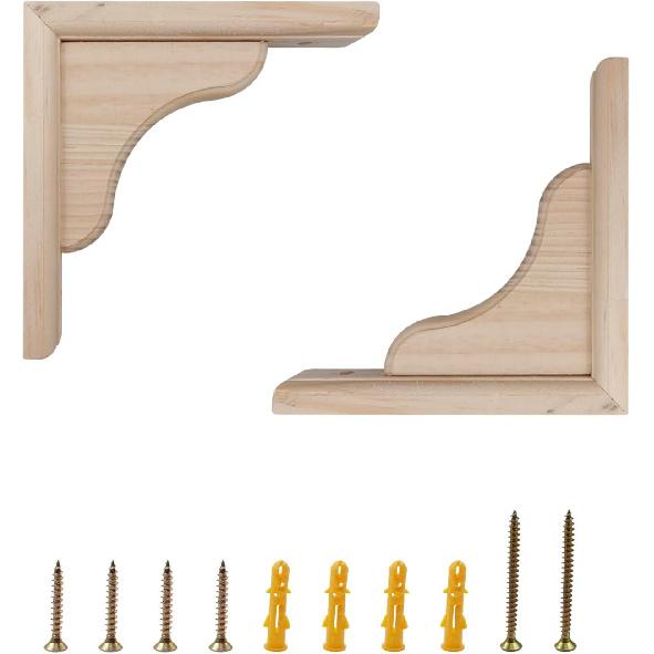 Antrader Solid Wall Mount Wood Shelf Bracket, 6 Inch Wooden Shelf Brackets, DIY Wood Bracket Include Mounting Screws, Pack of 2