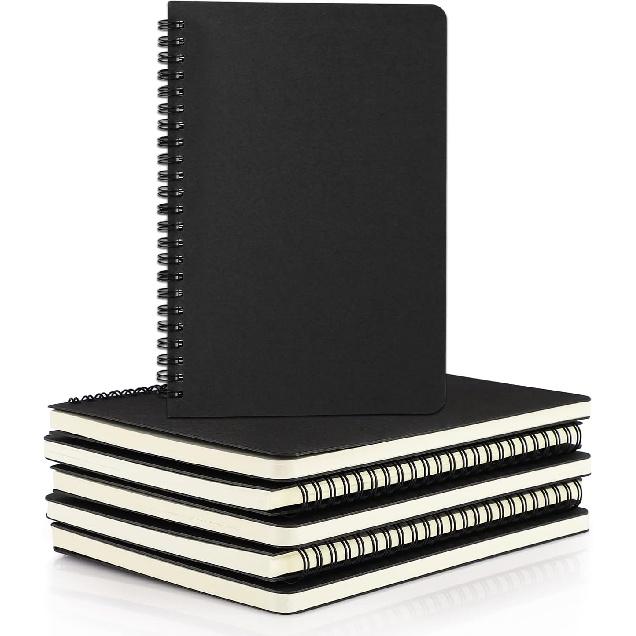 EUSOAR A5 Spiral Notebook, 6 Pack 5.5" X 8.3" 120 Pages Hardcover Lined Travel Writing College Ruled Notebooks, Memo Notepad Sketchbook, Students
