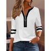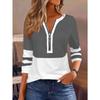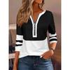 Plus Size Long Sleeve T-Shirt with Geometric Stripes Color Block Ring Zipper Detail Fall Fashion