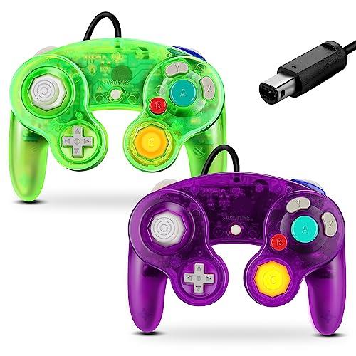 FIOTOK GameCube Controller Classic Wired Controller for Wii Nintendo Gamecube (Clear Purple & Clear Green - 2 Pack)