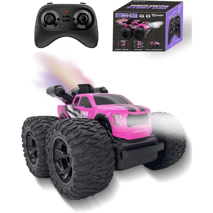 Monster Truck for Girls, Girls Remote Control Car Toys, Pink RC Trucks with Spray Function, 4WD 360° Flips Rotating Car Toys for Girls, Ideal