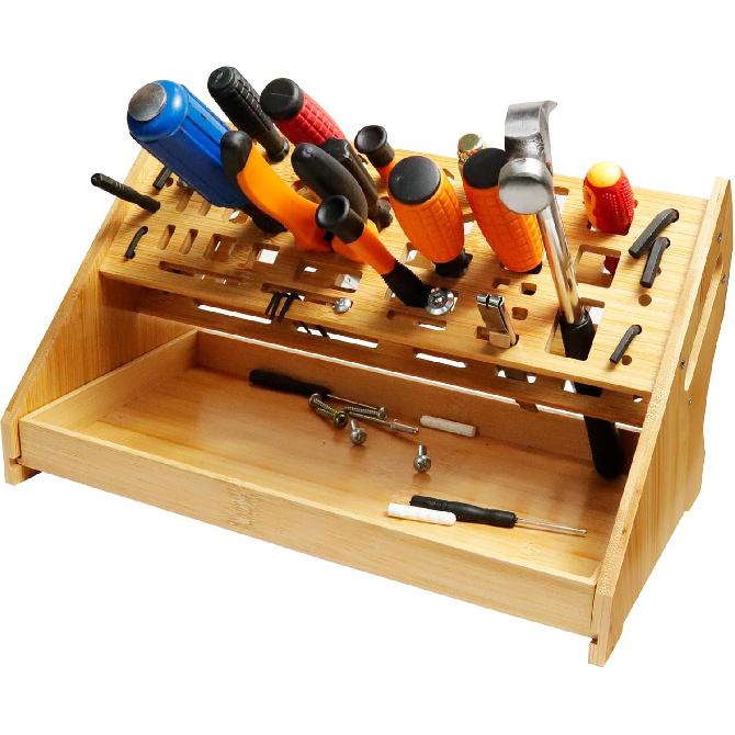 Screwdriver Organizer Desktop Screwdriver Holder 53 Slots Workbench Rack Stand Bamboo Tool Storage Organizer for Plier Hammer Allen Wrench