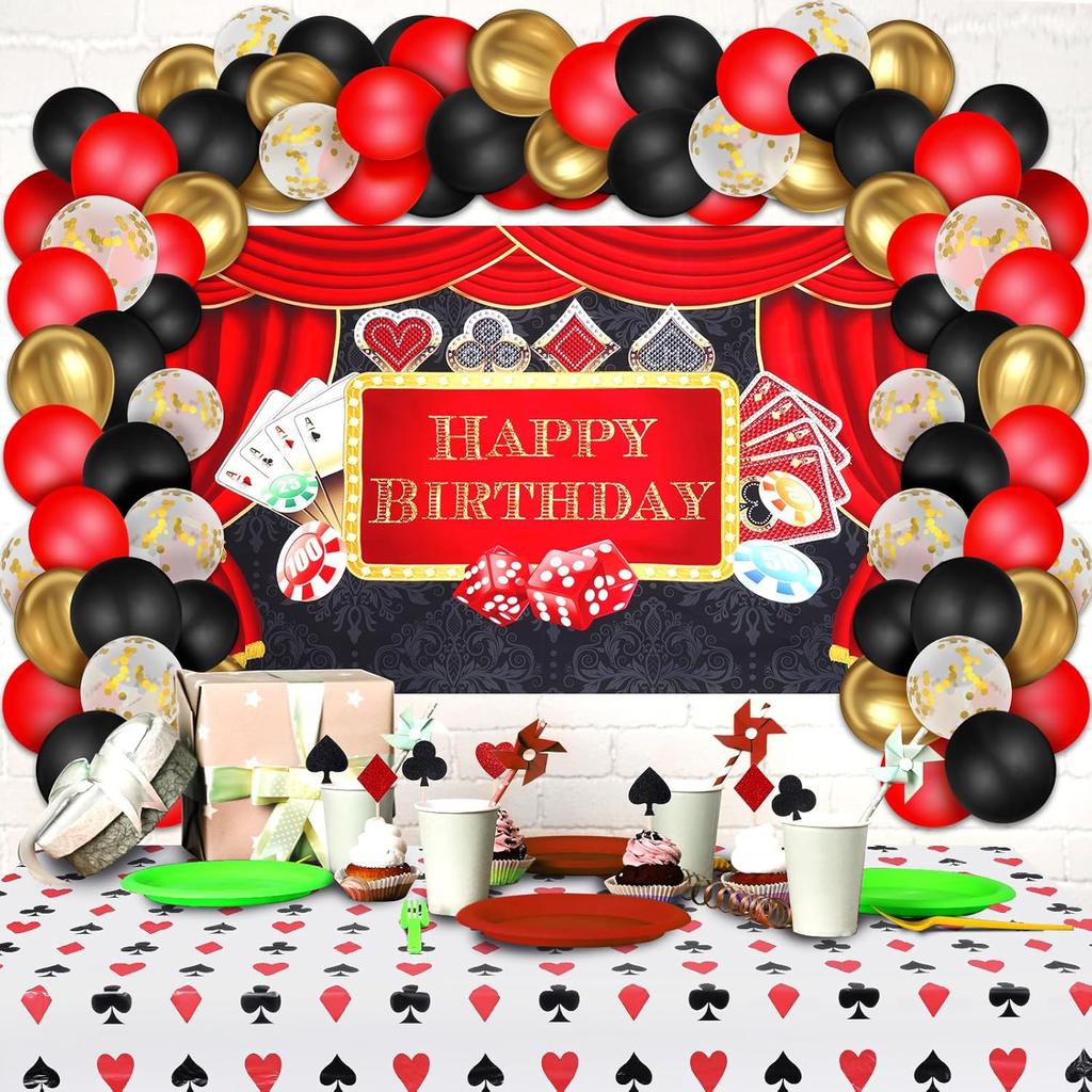 Size details: the casino backdrop measures approx. 5 x 3 ft, it is large enough for the casino theme party decoration and photography, the latex balloons are 10 inch, 12 inch and 5 inch in diameter, they will add an extra touch to casino night and casino themed party