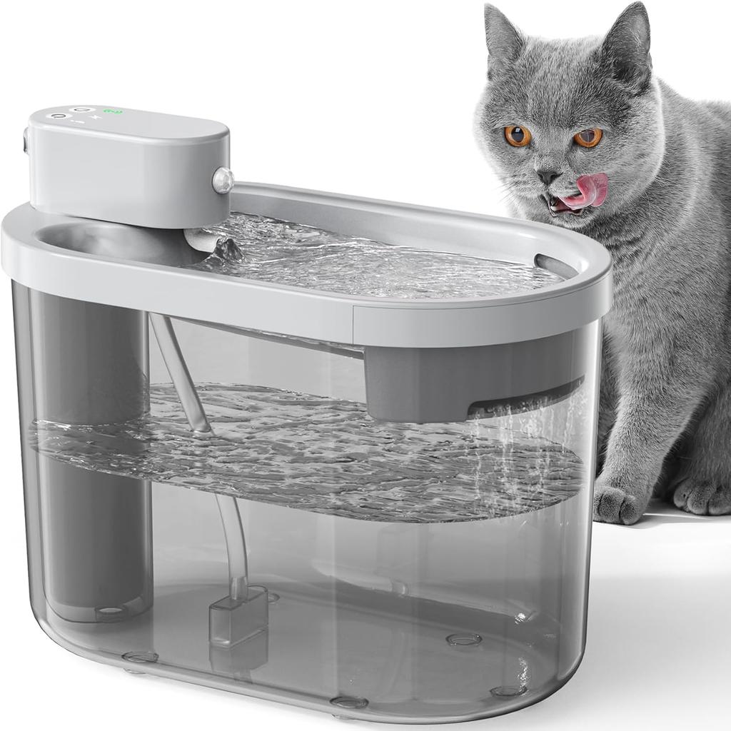 Cordless & Rechargeable Battery Operated Cat Water Fountain, Ultra Quiet Cordless Pet Drinking Fountain with Motion Sensor, 74oz/2.2L Automatic Cat