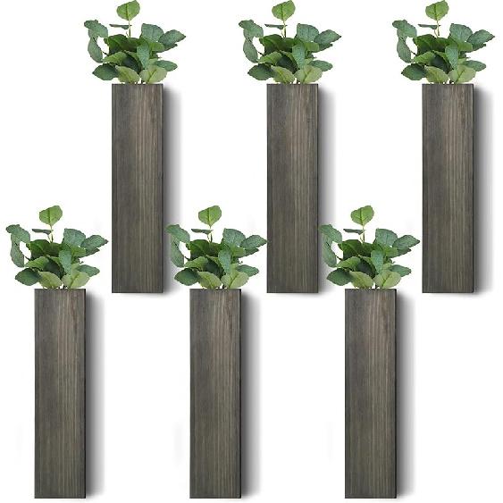 Skylety 6 Pack Wood Wall Planters for Indoor Plants Wooden Hanging Vase Farmhouse Wall Decoration for Bedroom and Living Room(Wood Color)