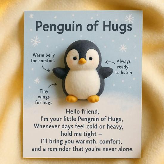 Pocket hug token offers a thoughtful and meaningful way to share warmth, strength, and love. This charming emotional support companion features an adorable positive penguin design, perfect for brightening desks, car dashboards, or pockets. Ideal for anyone needing a little comfort or encouragement, it serves as a gentle reminder that they are never alone.