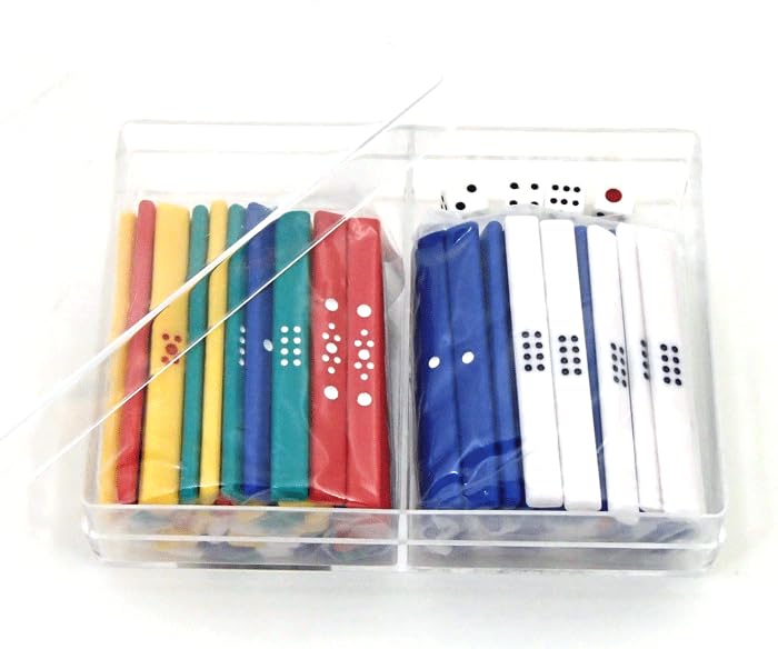 Enjoy Mahjong with This Portable Mahjong Colored Scoring Stick Set (91 Sticks) with 4 Dice, In a Plastic Case.