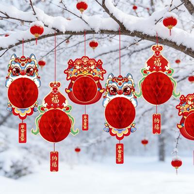 Honeycomb Character Decor Year Decoration Garland Decorative Red Paper Ornaments for Living Room