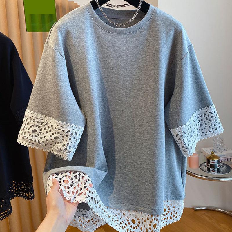 Summer Fake Two-piece Lace Splicing Short-sleeved T-shirt Women's Fashionable Niche Versatile Clothes