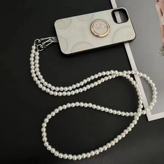 Mobile Phone Lanyard with Adjustable Chain Faux Pearl Beaded Crossbody Necklace Strap Anti-lost Wrist Strap for Phone Case Accessories