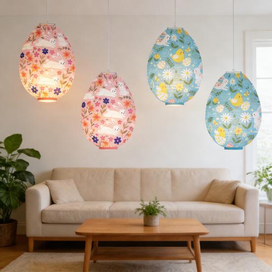 Easter Egg Paper Lantern Bunny Chick Flower Pattern Egg Shaped Hanging Lantern for Easter Party Home Decor