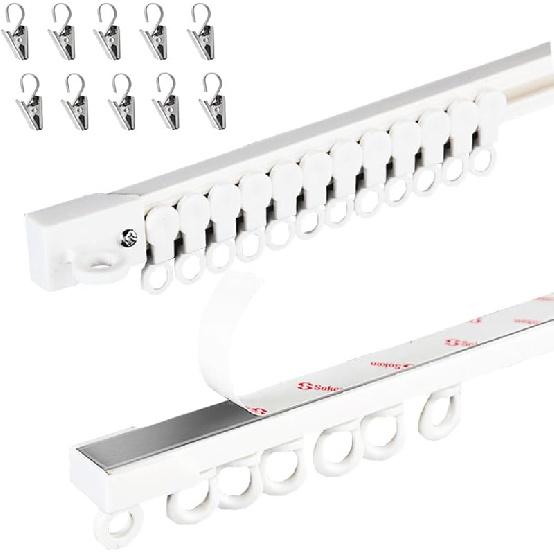 ZSLHXFZHJ Adhesive Curtain Track, Self Adhesive Ceiling or Wall Curtain Rail Set (80 Inch)-No Drill, Screws, or Tools Curtain Hangers, No Damage