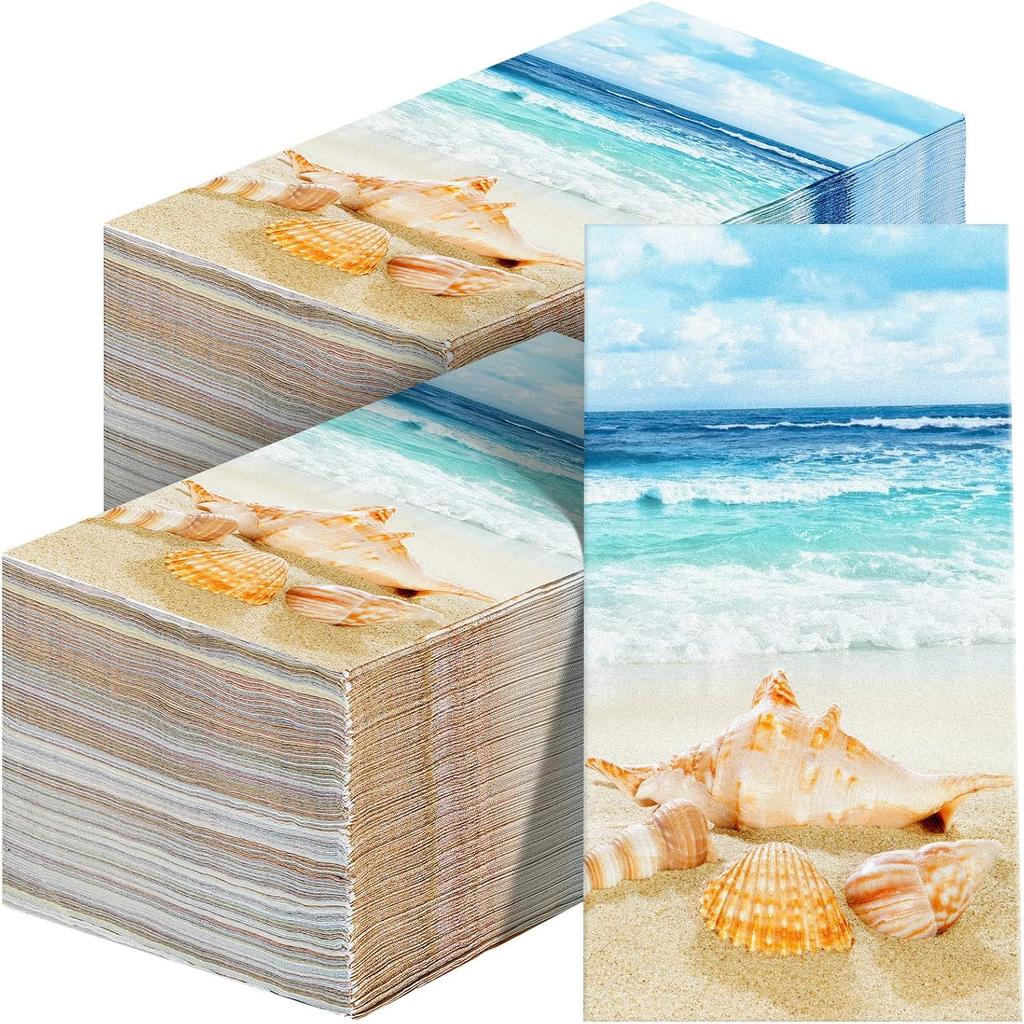 Crtiin 200 Pieces Nautical Beach Guest Napkins Bathroom Disposable Summer Tropical Ocean Coastal Towels Seashell Sea Beverage Paper Hand Napkins