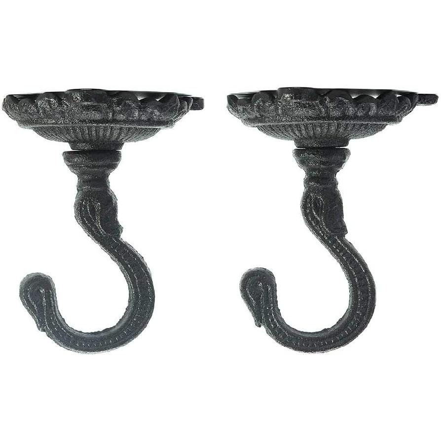 Sungmor Heavy Duty Ceiling Hooks for Hanging Plants, 2PC Black 3.5x3.9Inch Large Cast Iron Ceiling Hooks, Antique Decorative Ceiling Swag Hooks for
