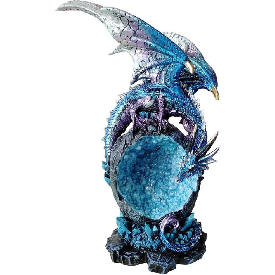 JORAE Dragon Statue On Sparkling Faux Crystal Cave Light Up Color Changing LED Collectible Dragon Figurine Home Décor (Blue), 8.5" H