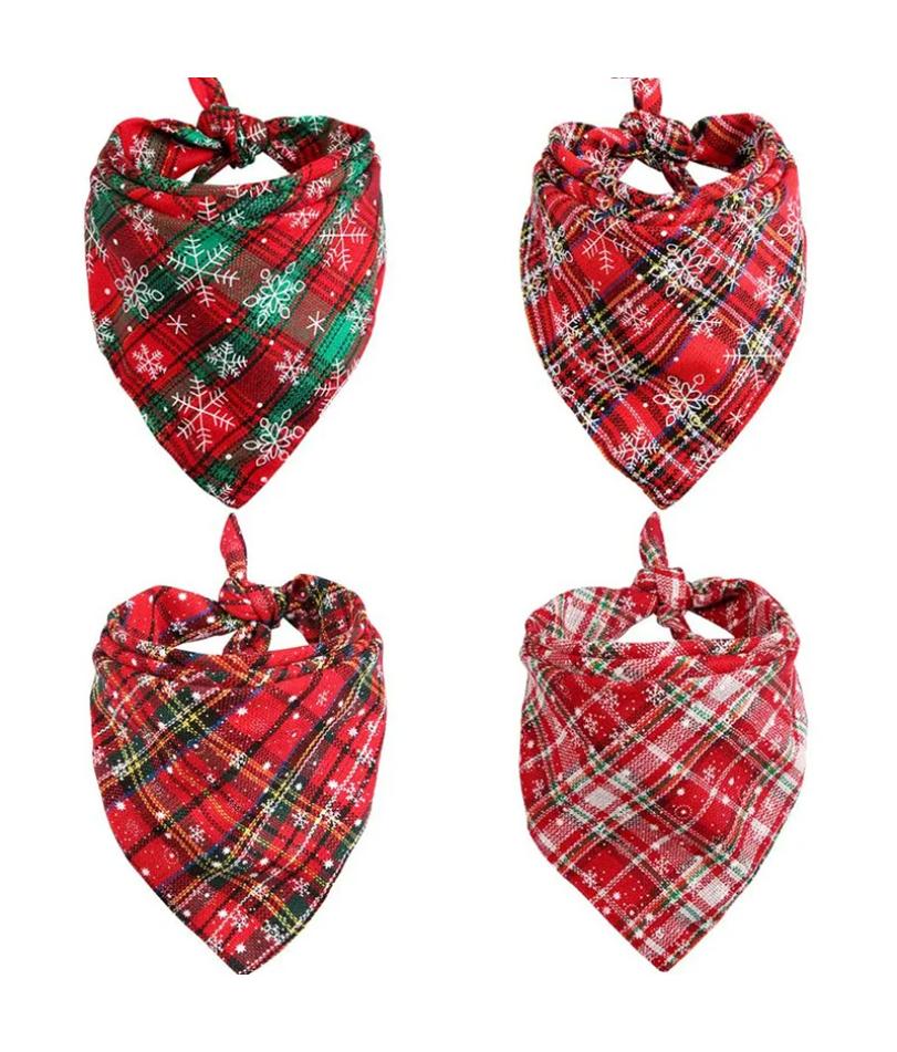 Dog Bandanas Large Pet Scarf Christmas Snow Print Dog Cotton Plaid WashableBow Ties Collar Cat Dog Scarf Large Dog Accessories