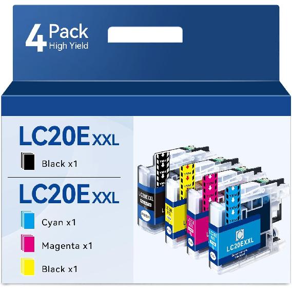 LC20E XXL 4PK Super High Yield Ink Compatible for Brother LC20E Ink Cartridges for Brother MFC-J985DW Ink Cartridges MFC-J775DW MFC-J775DW XL,